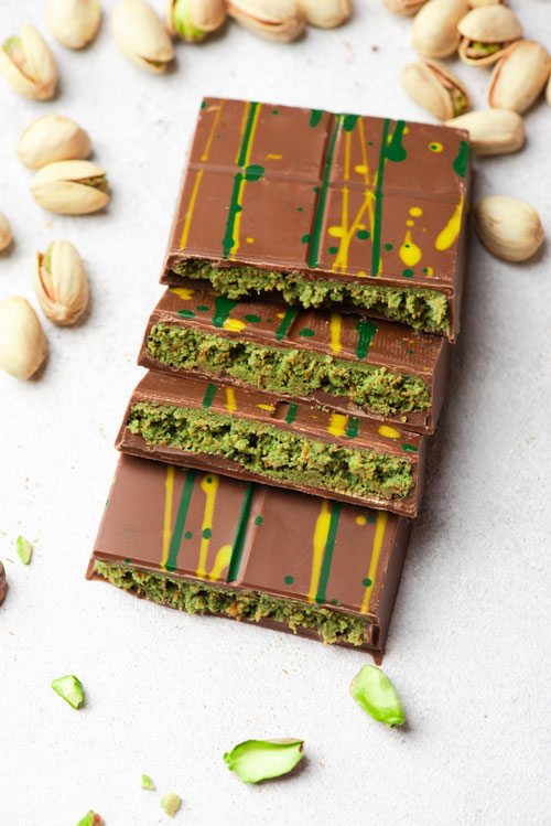 Mainly yellow-green kernels with a small proportion of darker pieces. Lower intensity of green color. Light yellow green. Noticeably lighter color, more mixed hues. Used in ice cream flavoring and bakery fillings.